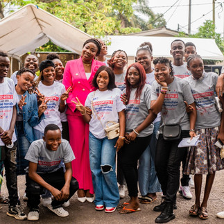 Honorable Deputé, Christelle VUANGA; vetu en costume rose : " Nous avons passé un magnifique moment d' amitié, d'échanges et surtout d' espoir avec les enfants drepanocytaires et leurs parents. Ces enfants sont accompagnés depuis leur naissances par des personnels aimants et surtout qualifiés sous le leadership du docteur #Tshilolo. Toute mon admiration envers ces parents courageux et resilients.